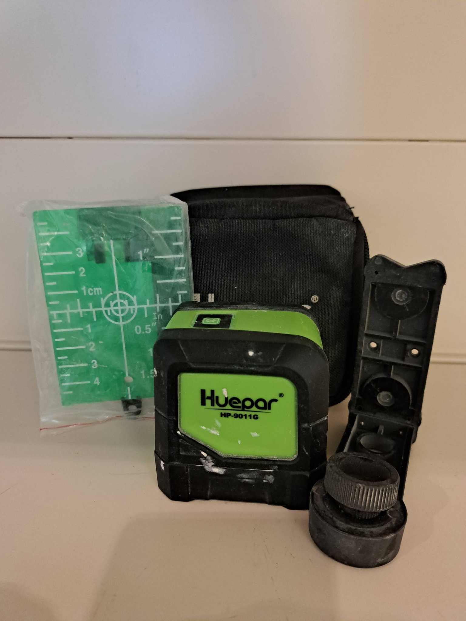 - Priedai: Komplekte paprastai yra magnetinis tvirtinimo pagrindas, lazerio taikinys, medžiaginis dėklas ir vartotojo vadovas.